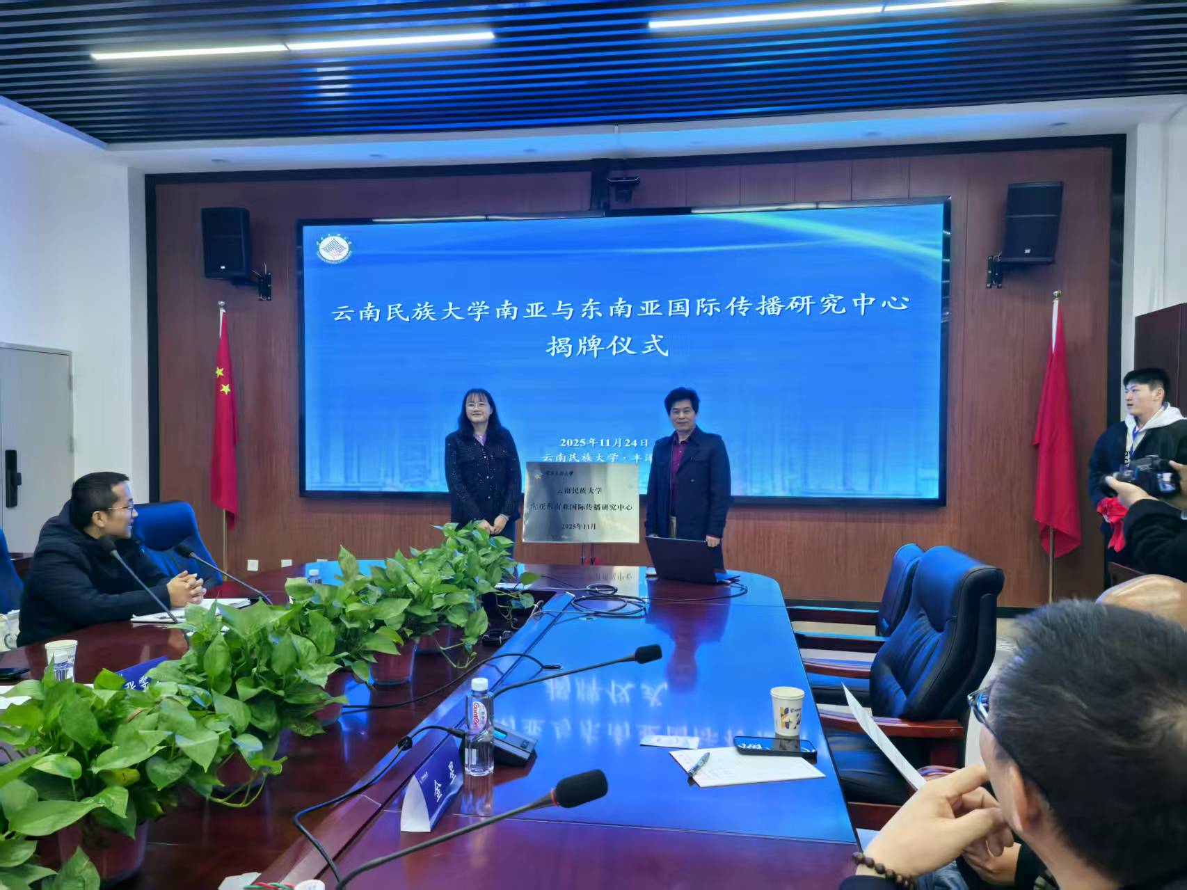 云南省广播电视台副总编辑雷激、复旦大学新闻学院教授张殿元、云南民族大学文学院党委书记杨茜、院长王国旭和该院的近百名师生出席了揭牌仪式和学术讲座,并就共同和深度开展周边传播学术方面的合作达成了共识。